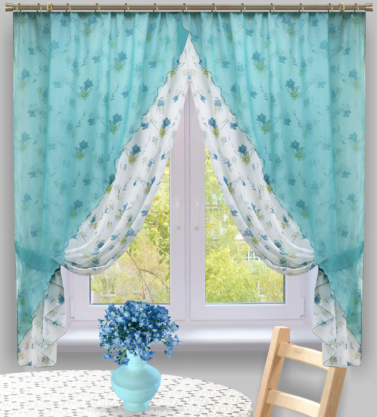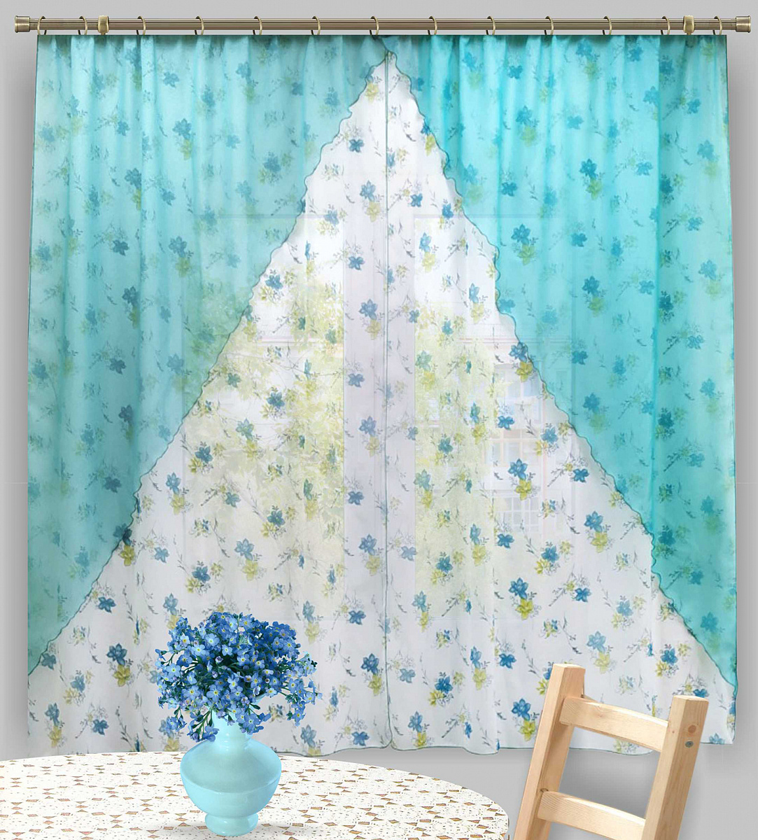 Уютная небольшая штора с легкими декоративными портьерами из вуали. Все детали на одной шторной ленте, что удобно в вывешивании и эксплуатации. Эта штора имеет лаконичный дизайн и привлекательную цену. А качество у нас всегда отличное!