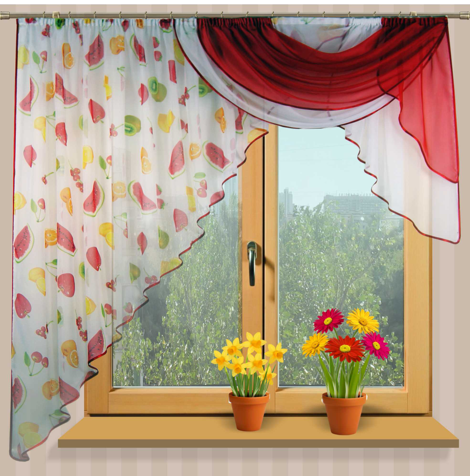 • Материал: Легкая вуаль с рисунком "фрукты", ламбрекен из однотонной вуали